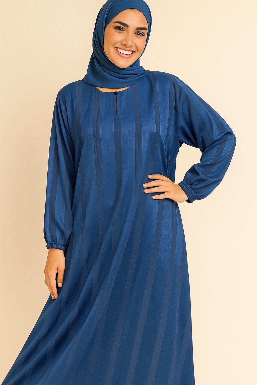 Navy Shade Abaya for Women – Size 56 | Tiktok Fabric, Elastic Sleeves