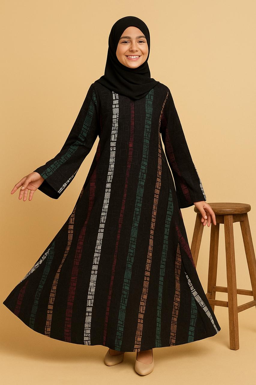 Kids Black stone Abaya| Firdous Fabric| Sizes 30–50