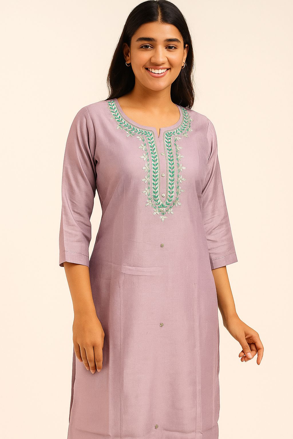 Description: Elevate your ethnic style with this elegant lavender 3-piece kurta set. The straight-fit kurta...
