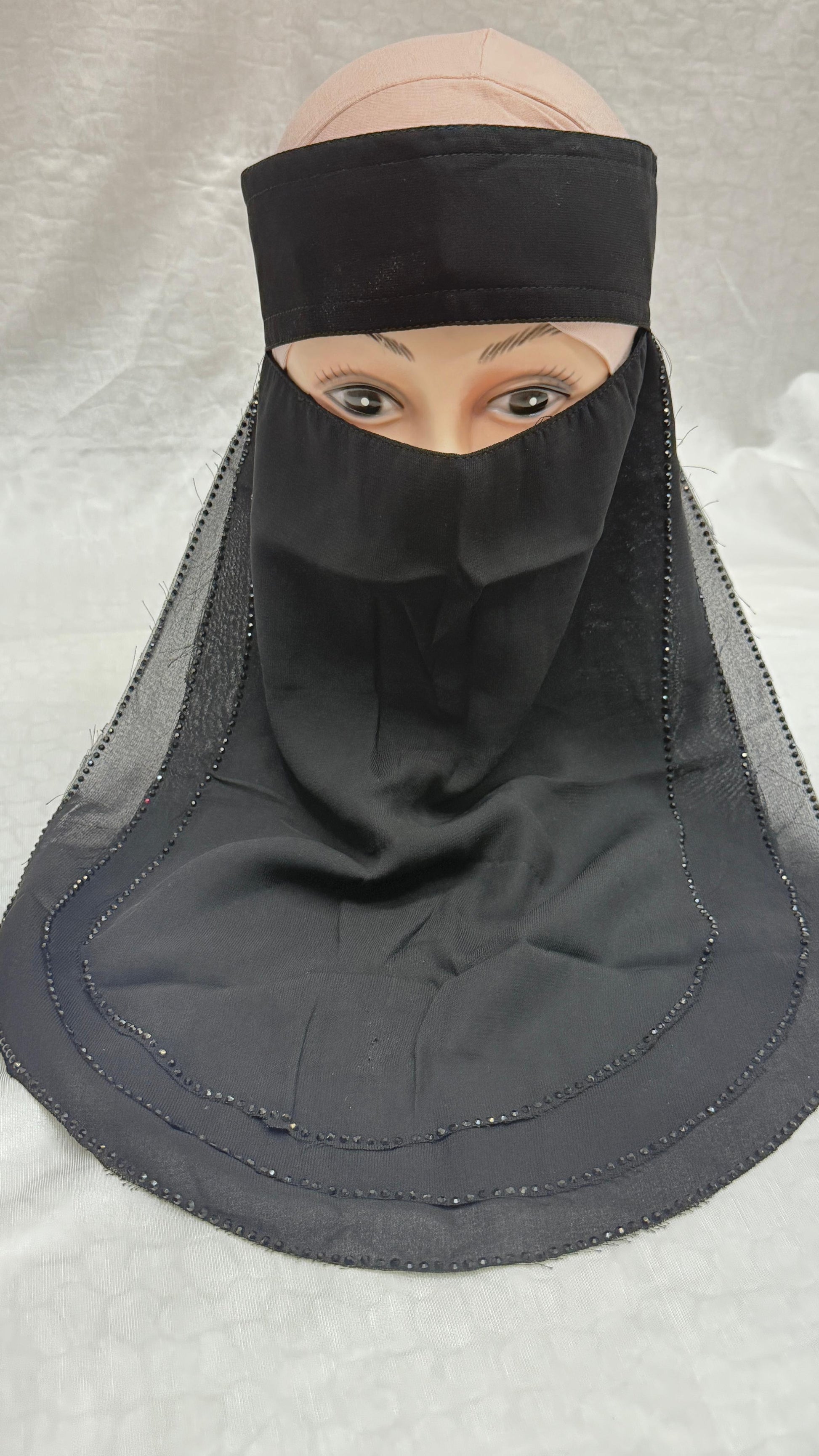 BLACK NIQAB WITH 3 LAYER FABRIC |SIMPLE STONE WORK